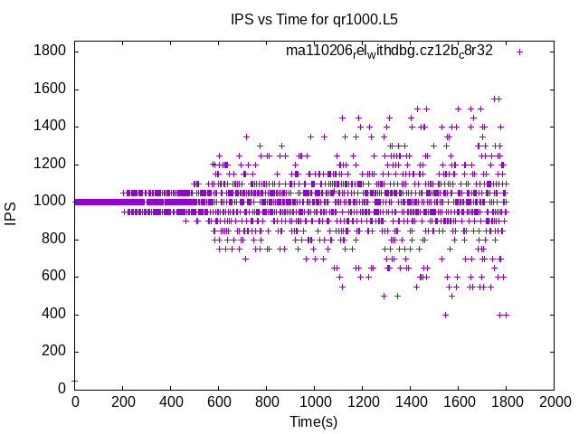 The test is run with a rate limit for the number of inserts/s. In some cases the DBMS is unable to sustain that rate. When a DBMS can sustain that rate IPS will be a horizontal line.