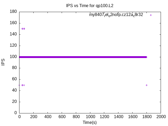 The test is run with a rate limit for the number of inserts/s. In some cases the DBMS is unable to sustain that rate. When a DBMS can sustain that rate IPS will be a horizontal line.
