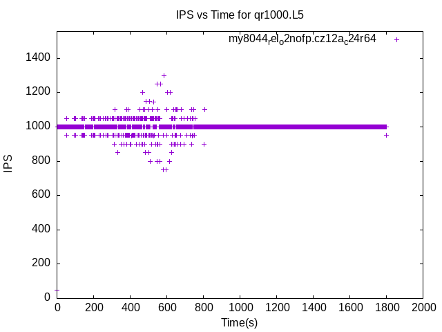 The test is run with a rate limit for the number of inserts/s. In some cases the DBMS is unable to sustain that rate. When a DBMS can sustain that rate IPS will be a horizontal line.